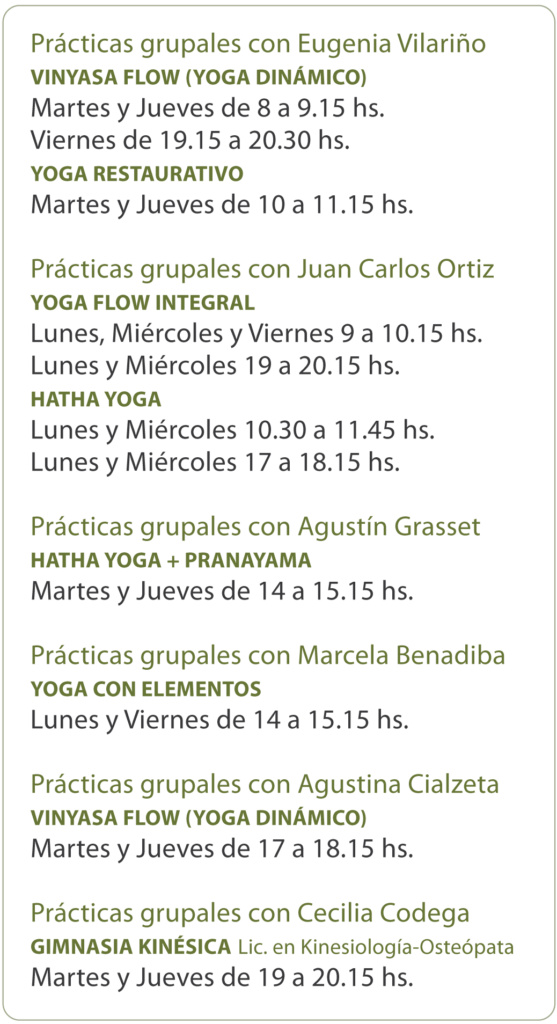 estimulan el balance entre fuerza, flexibilidad y coordinación, proponiendo diferentes secuencias de asanas, transiciones, ritmos y búsquedas de equilibrios que ejerciten la concentración y estabilidad.
